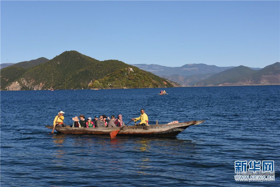 游客在瀘沽湖坐船欣賞美景。新華網(wǎng) 李寧 攝
