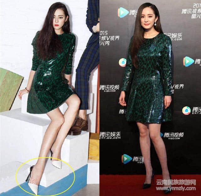 雖然大冪冪的衣品真的很好,但是這條裙子更適合迪麗熱巴,首先因?yàn)樗耐缺容^長(zhǎng),而且腳上的白色鞋子和這身綠色裙子更搭。而且楊冪的淺色唇彩要失色很多。