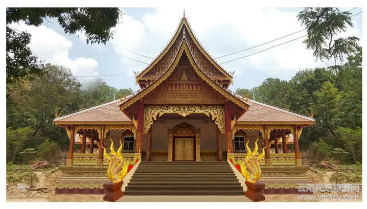 由于歷史的變遷讓文化氛圍漸漸消失,要通過(guò)恢復(fù)南傳佛寺的歷史建筑面貌,在內(nèi)飾方面體現(xiàn)佛家經(jīng)典和當(dāng)?shù)孛褡逦幕娜诤?,用壁?huà)、圖騰及相關(guān)元素來(lái)布局,保存和恢復(fù)當(dāng)?shù)匚幕尞?dāng)?shù)鼐用袷芤?。同時(shí),讓后人有了繼承和發(fā)揚(yáng)傳統(tǒng)文化的實(shí)物,使之成為民族文化遺產(chǎn)……