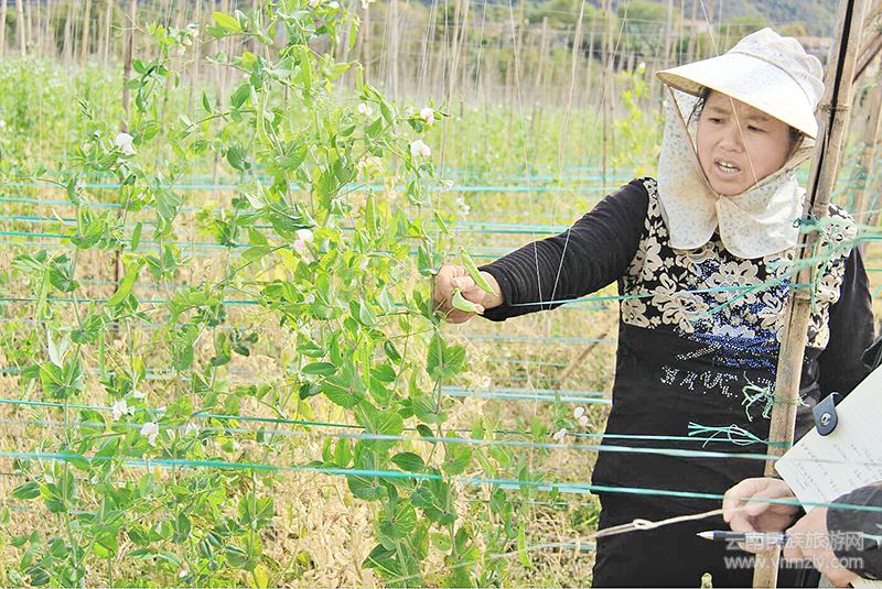 在落水村委會雷家營村,2016年24歲大學(xué)剛畢業(yè)的雷舒,舍去可以在昆明地鐵公司上班的機會,毅然回到家鄉(xiāng),承包了上千畝土地涉及300多戶村民,種植高檔蔬菜貢菜、青花、碗豆種植面積450畝,采取專業(yè)合作社+農(nóng)戶模式,每畝投入2000元,每畝產(chǎn)值6000元,當(dāng)年見效。