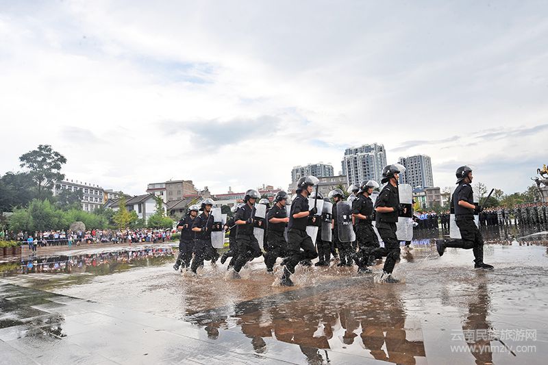 2017年9月30日上午,2017昆明晉寧第二屆滇池開漁節(jié)暨古滇漁人文化旅游節(jié)開幕式在七彩云南古滇名城隆重舉行。根據(jù)工作安排,巡特警大隊投入警力30人配合相關(guān)部門開展開幕式安保工作,以確保各項活動安全有序進(jìn)行。