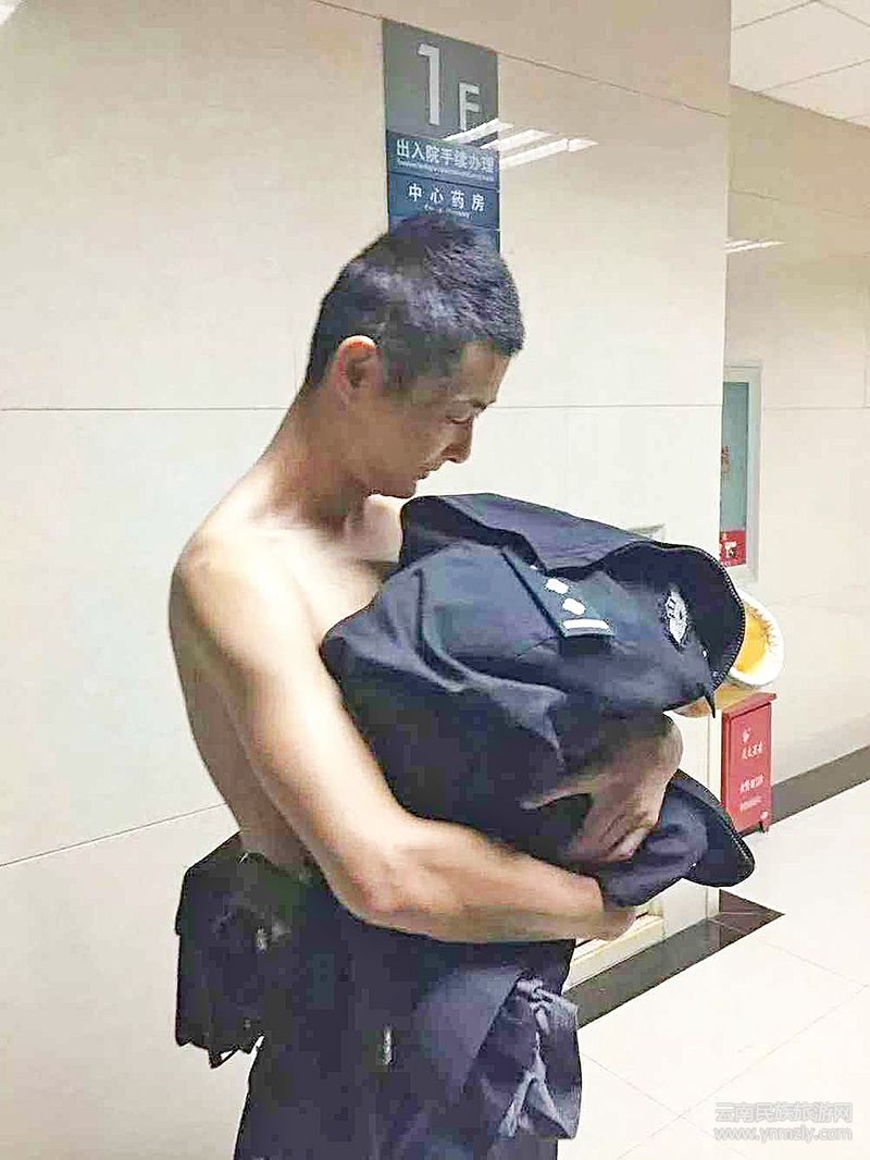 接到指令后,東城派出所值班民警吳宇及同事立即趕往報(bào)警人所稱地點(diǎn),途中與報(bào)警人取得聯(lián)系。出警民警在福塔公園后山樹林內(nèi)發(fā)現(xiàn)一名男嬰躺在地上哭泣,嗓音沙啞,嘴唇烏青,四肢冰冷,聲音非常微弱,旁邊一條裹布被嬰兒蹬散在一邊。民警初步判斷這是一名被父母遺棄的嬰兒。時(shí)值寒冬,樹林內(nèi)非常濕冷,面對(duì)快要凍僵的嬰兒,民警吳宇見(jiàn)狀來(lái)不及思索,火速將自己身穿的毛衣及警服全部脫下,將嬰兒嚴(yán)嚴(yán)實(shí)實(shí)的包裹后緊緊抱在胸前,由戰(zhàn)友駕車迅速趕赴楚雄州人民醫(yī)院新生兒科救治。途中及時(shí)向市局指揮中心匯報(bào)了情況,指揮中心立即與醫(yī)院聯(lián)系開通救治“綠色通道”,并聯(lián)系楚雄市民政局兒童福利院?jiǎn)?dòng)救助程序。