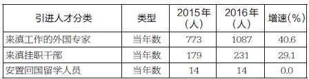 表2 2016年云南省各類人才引進(jìn)數(shù)量及其增長(zhǎng)速度
