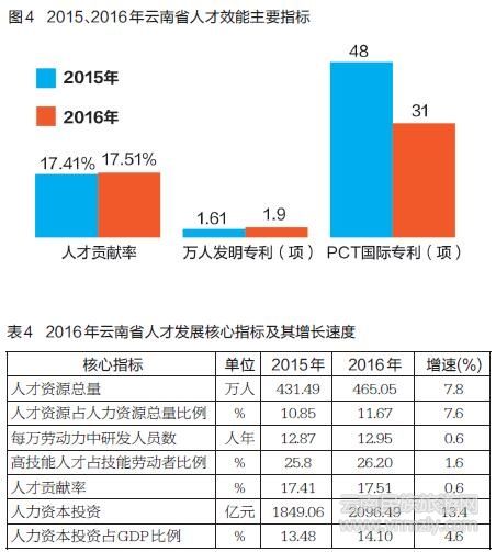 2016年云南省人才貢獻(xiàn)率17.51%,萬(wàn)人發(fā)明專利擁有量為1.90項(xiàng),PCT國(guó)際專利申請(qǐng)量共31項(xiàng)。具體如圖4與表4所示。