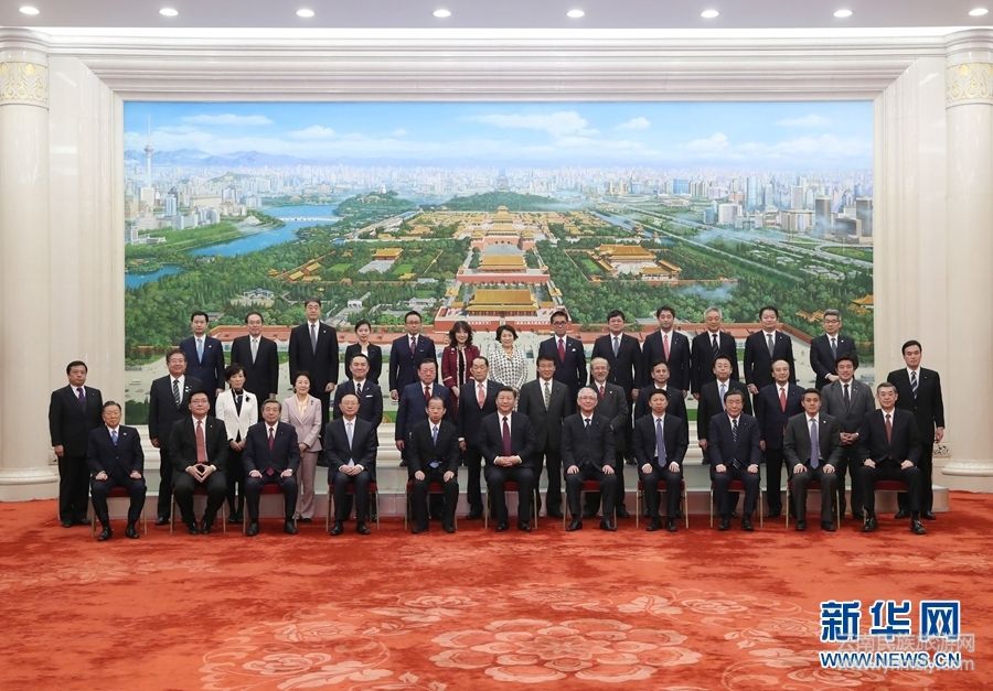 會見后,習(xí)近平與參加中日執(zhí)政黨交流機(jī)制第七次會議部分日方代表合影留念。
