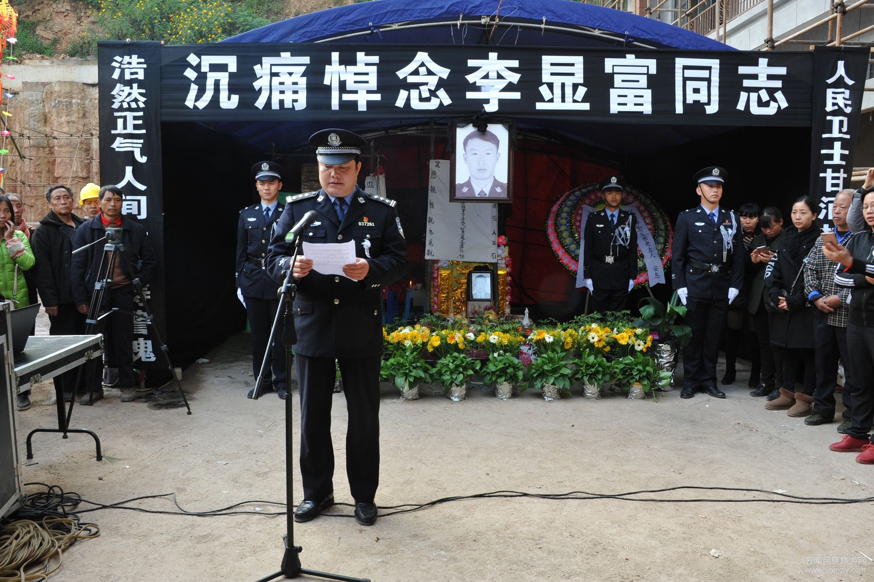 云南省公安廳刑偵總隊(duì)副政委王建明、文山州公安局副局長程軍,富寧縣縣長陸勇、富寧縣委副書記、政法委書記邵麗華等領(lǐng)導(dǎo)以及富寧縣黨政領(lǐng)導(dǎo)班子、文山州各縣公安局代表,富寧縣公安局黨委和邊防、消防、武警官兵及李顯富生前親屬好友等300人參加了追悼會(huì)。