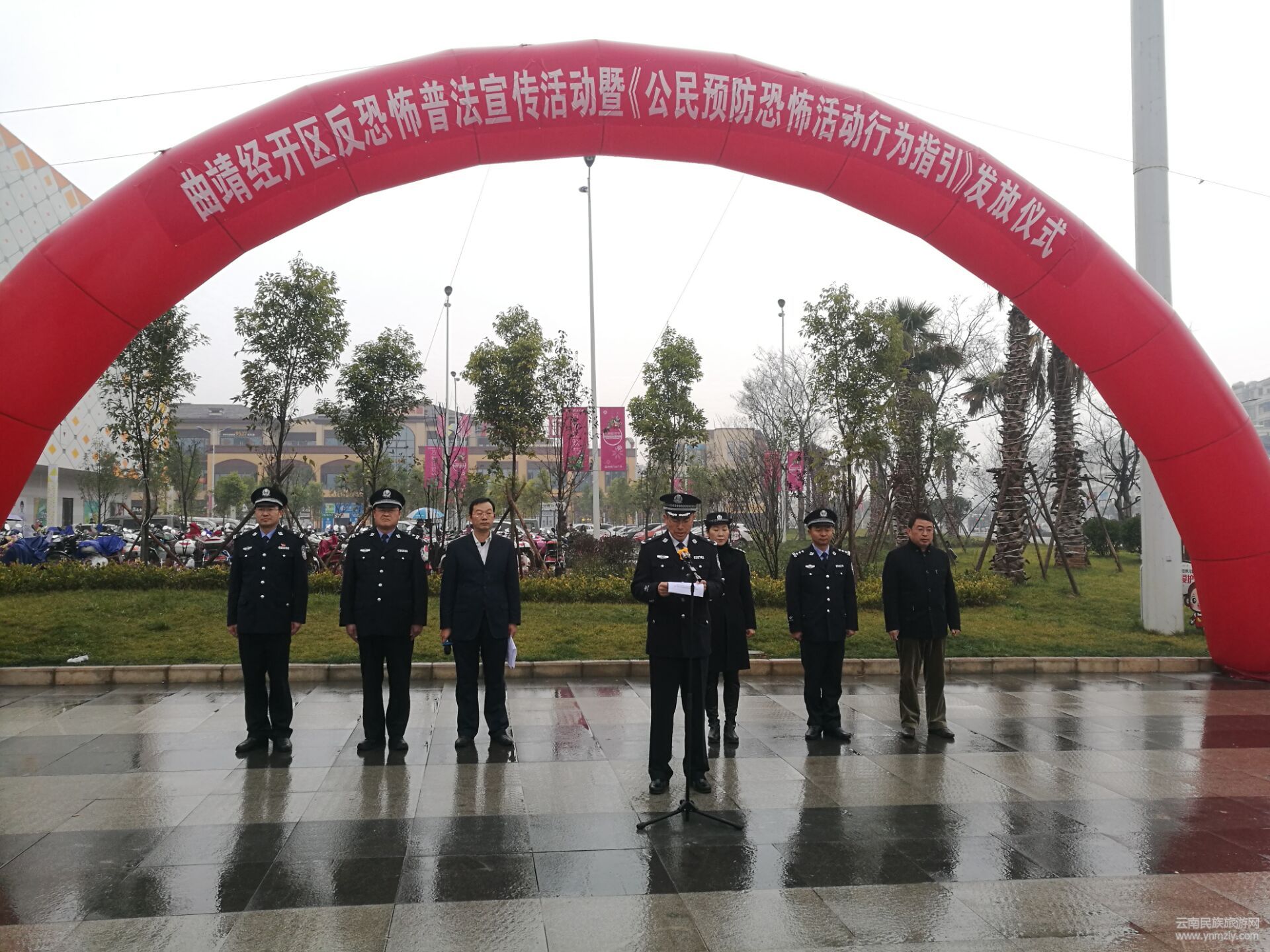 12月27日下午,曲靖經(jīng)濟(jì)技術(shù)開(kāi)發(fā)區(qū)與全國(guó)、全省、全市同步在曲靖市經(jīng)開(kāi)區(qū)萬(wàn)達(dá)商業(yè)廣場(chǎng),舉行了反恐怖普法宣傳活動(dòng)。經(jīng)開(kāi)區(qū)管委會(huì)副主任、政法委書(shū)記、反恐怖工作領(lǐng)導(dǎo)小組組長(zhǎng)、開(kāi)發(fā)區(qū)分局局長(zhǎng)賴韋名,經(jīng)開(kāi)區(qū)政法委、公安分局、社會(huì)事業(yè)局、反恐成員單位負(fù)責(zé)人和工作人員及曲靖師范學(xué)院、曲靖醫(yī)學(xué)高等??茖W(xué)校、經(jīng)開(kāi)區(qū)中小學(xué)師生代表等共2000余人參加了活動(dòng)。