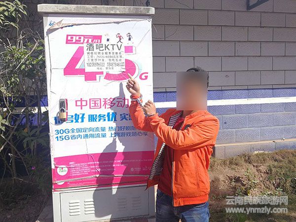 據(jù)悉,違法嫌疑人蔣某在未經(jīng)許可的情況下,擅自在西盟縣勐卡路、勐梭路的墻體、電桿等公共設(shè)施上黏貼以“KTV招服務(wù)員”為內(nèi)容的廣告單,其行為導(dǎo)致被黏貼的公共設(shè)施損毀,且后期清理工作耗費人力、財力,西盟警方于12月20日在景洪市將蔣某查獲。經(jīng)詢問,蔣某對其違法事實供認不諱。