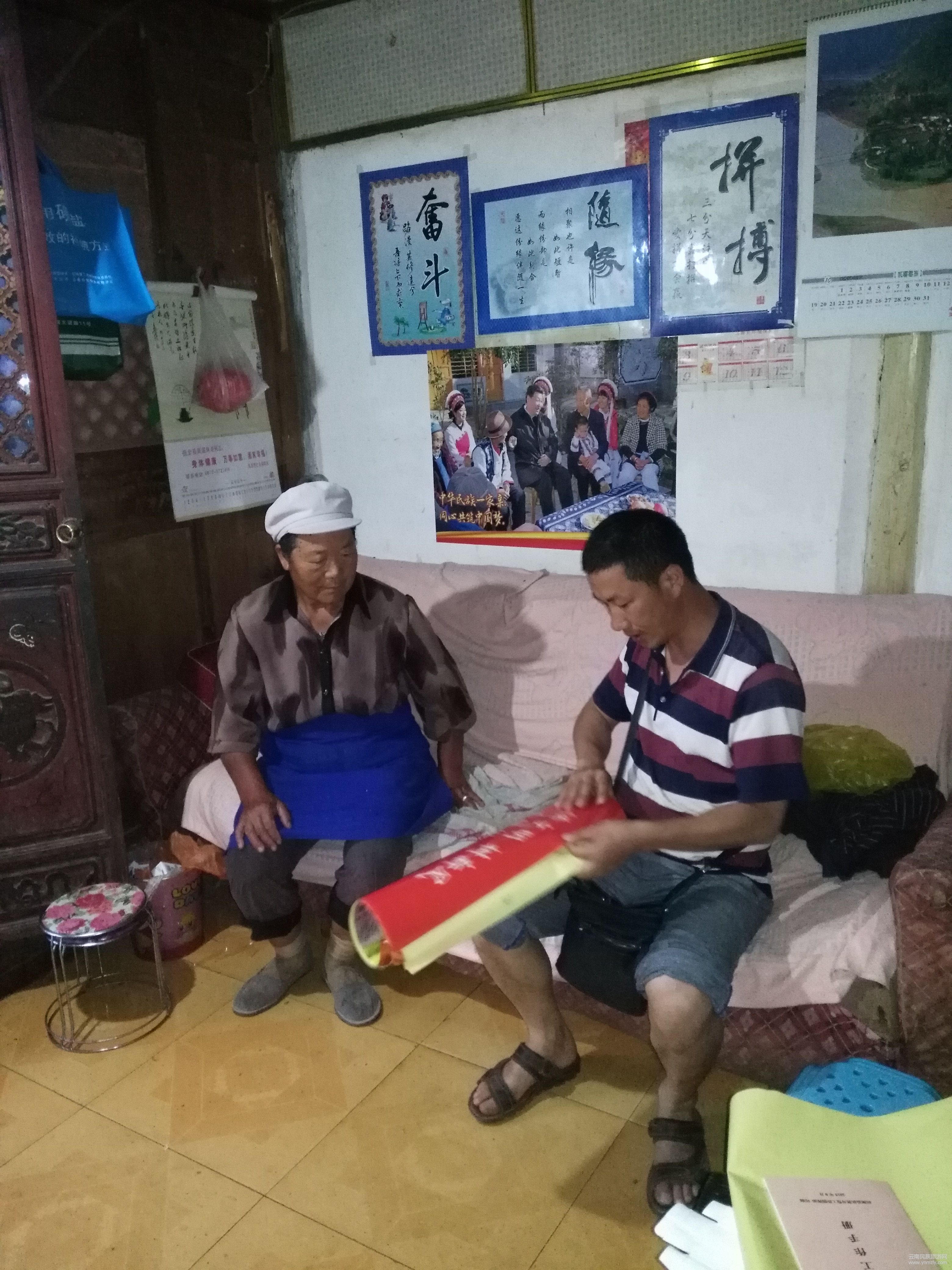 從楊桂和家進(jìn)來,一路北上,來到王豎華家。王豎華住的是白族民居,家里有了牛和豬,父母在家種田。近40歲的楊豎華和妻子在四川幫人開大車,孩子在四川讀書。家里是2013年評(píng)為建檔立卡戶,2014年退出,父親高血壓。進(jìn)到家門,王豎華母親迅速的給我倒上了水,和我拉著家常,堂屋里貼著習(xí)總書記考察大理的畫,感覺很親切。王豎華母親說:“孩子長(zhǎng)大,都在外面打工,家里只有老倆口,養(yǎng)著豬和牛,田里種植幾畝莊稼,年紀(jì)大了,只能由孩子自已奔了,現(xiàn)在家里吃穿住都不用愁,生活比以前好多了。”我和王豎華母親一起查看家里墻上粘的明白卡,看到近兩年多來國(guó)家的產(chǎn)業(yè)補(bǔ)助、醫(yī)療補(bǔ)助,慢性病補(bǔ)助,生態(tài)補(bǔ)償……,心里踏實(shí)多了。