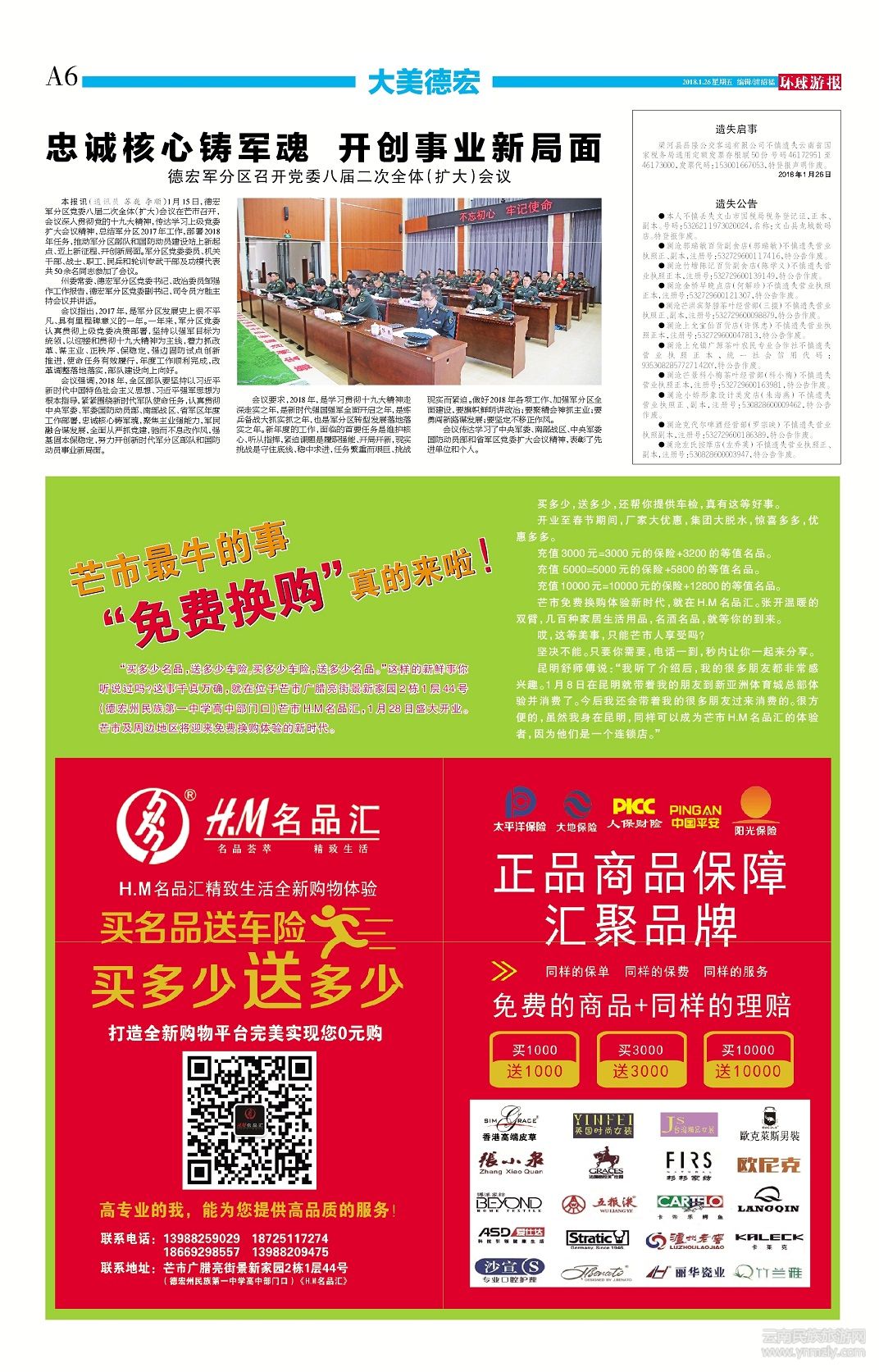 ● 忠誠(chéng)核心鑄軍魂 開(kāi)創(chuàng)事業(yè)新局面 德宏軍分區(qū)召開(kāi)黨委八屆二次全體(擴(kuò)大)會(huì)議 ( 2018-01-26 )
