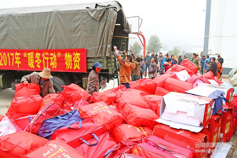 大雪節(jié)令已過,天氣轉(zhuǎn)冷。12月17日,蒙自市2017年暖冬行動暨禁毒防艾宣傳走進老寨苗族鄉(xiāng)白牛廠小學,將價值19余萬元的棉被、毛毯、羽絨服、鞋子、學習用品等物資送到困難群眾和學生的手中,把黨和政府、社會各界愛心人士的關(guān)懷和溫暖送到群眾中去。蒙自市委常委、市人武部政委張利文參加捐贈儀式并講話。