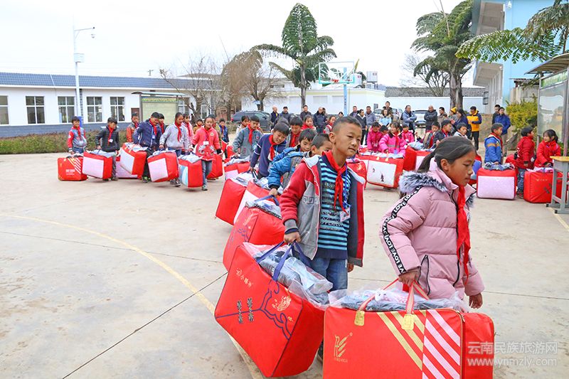 蒙自市旅游投資開發(fā)有限公司干部職工和各愛心企業(yè)慰問成員走進新莊小學(xué),為158名貧困學(xué)生集中發(fā)放了慰問物資,共捐贈學(xué)生學(xué)習(xí)物資158套、棉被158床、體育用品一批。受捐學(xué)生們拿著手里的東西,臉上洋溢著開心的笑容。