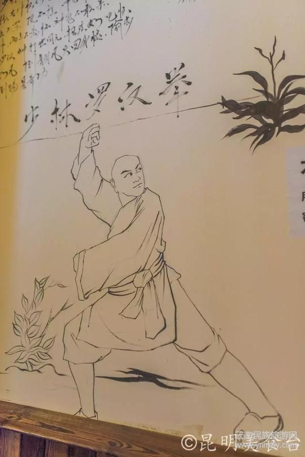 墻壁上繪畫著各種武林秘笈,華山碎邪劍法、少林羅漢拳、玉女心經(jīng)、降龍十八掌、九陰真經(jīng)……各種。
