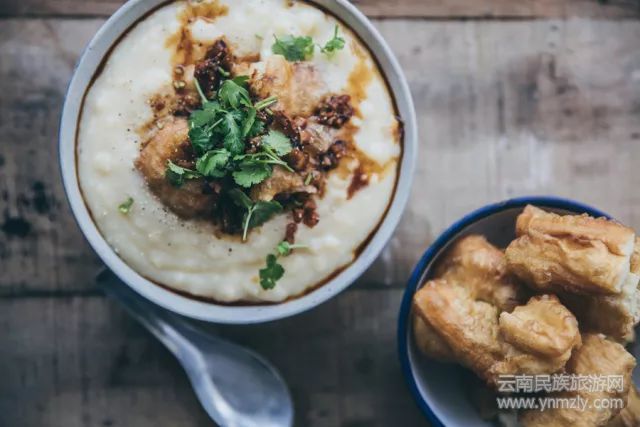 在北方有豆?jié){油條,而在昆明一碗稀豆粉蘸油條才是地道的云南早餐。稀豆粉是用上好的白豌豆磨粉,經(jīng)煮制成稀粥狀而成,它與豌豆粉“師出同門”,一個粥狀、一個塊狀,都是將豌豆做出極致的美食產(chǎn)物。美食老饕們還會用稀豆粉拌米線、卷粉來吃,口感滑潤扎實(shí),回味無窮。