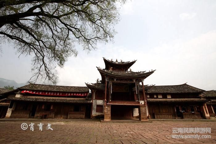 如今的四方街格局與從前沒有太大的變化,東西寬約100米,南北長約300米,整個廣場街面均用紅砂石鋪就,街中心有兩棵古柏樹,在廣場中心矗立著一座古樸典雅的戲臺,它坐東向西,對面是一座始建于明代的興教寺,在集市中心矗立著這樣一座融多種宗教流派于一身的寺廟,實屬少見。