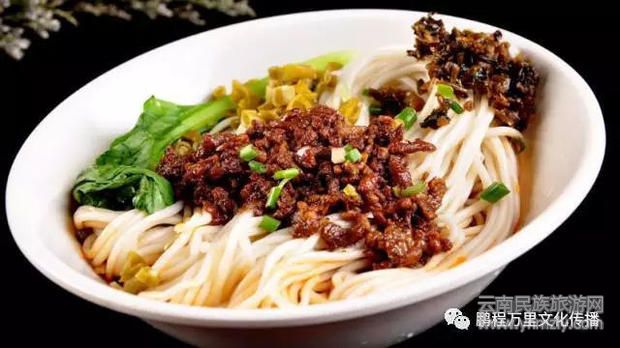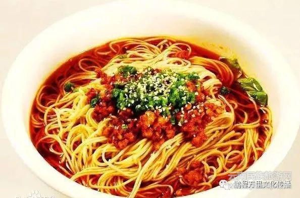 擔(dān)擔(dān)面,據(jù)說源于挑夫們?cè)诮诸^挑著擔(dān)擔(dān)賣面,因而得名,成菜面條細(xì)薄,鹵汁酥香,咸鮮微辣,香氣撲鼻,十分入味。