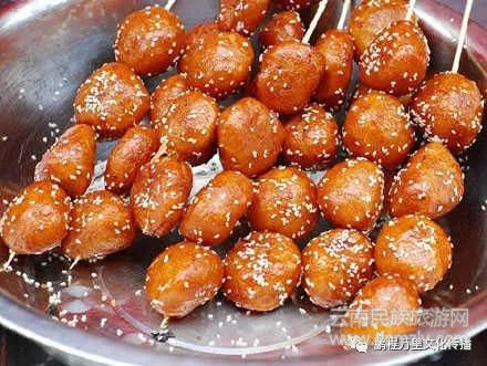 三大炮是著名的四川地區(qū)傳統(tǒng)特色小吃,主要由糯米制成,由于在拋扔糯米團(tuán)時(shí),三大炮如“彈丸”一樣,發(fā)出“當(dāng)、當(dāng)、當(dāng)”的響聲,分為“炮”,“火炮”,“槍炮”,故名總稱“三大炮”。