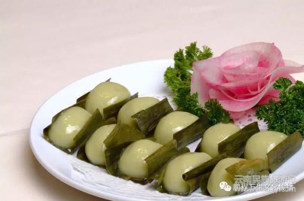 葉兒粑,制作葉兒粑選料考究,工藝精細(xì),具有色綠形美、細(xì)軟爽口的特點(diǎn),為四川傳統(tǒng)名小吃之一。用糯米粉面包麻茸甜餡心或鮮肉咸餡心,置旺火蒸。特色是清香滋潤(rùn),醇甜爽口,荷香味濃,菜分兩味,咸鮮味美。