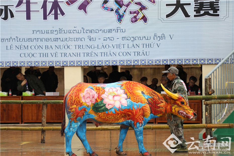 普洱江城丟包狂歡節(jié)上演“牛體彩繪” 記者朱清然 攝