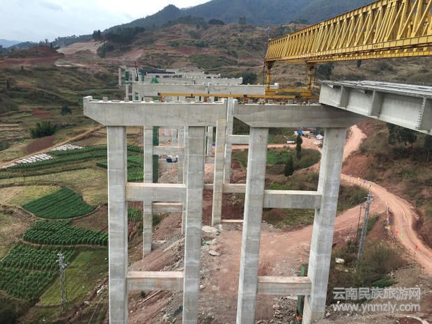 2016年1月22日,昆明繞城高速公路東南段山?jīng)_河橋梁施工