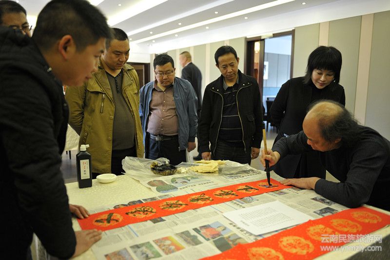 期間,云南民族商會民族民間書畫院院長譚白虎、副院長劉子才還到現(xiàn)場撰寫春聯(lián),為參會人員送上了一對對美好祝愿。(環(huán)球游報 記者 胡勇恒)