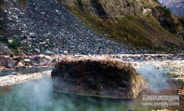 下達(dá)基野溫泉,隱藏在普渡河河谷中,途中需經(jīng)過紅軍當(dāng)年激戰(zhàn)金沙江的紀(jì)念碑和索橋遺址。