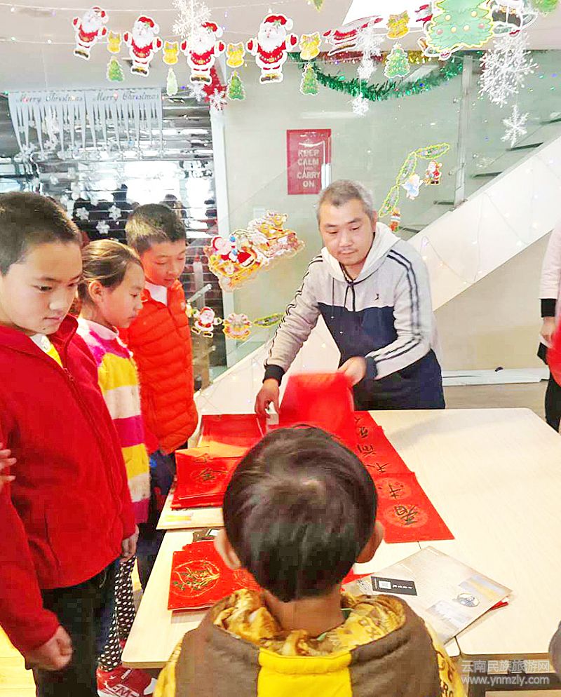2017年最后一天,在2018年春節(jié)來臨之際,云南傳統(tǒng)蒙學(xué)研究會子清書院攜手云南知名書法家及書法愛好者,向昆明市民免費(fèi)寫送春聯(lián)活動在官渡區(qū)銀海暢園東區(qū)隆重舉行。10多名小書法家現(xiàn)場助陣,揮毫潑墨為市民書寫上千副春聯(lián)。許多領(lǐng)到書法家墨寶的市民,紛紛給這次惠民活動的書法家點(diǎn)贊。此次送春聯(lián)活動在官渡區(qū)暢園東區(qū)舉行,官渡區(qū)暢園臨近官渡古鎮(zhèn),人來人往。得知是免費(fèi)提供紅紙、書法家義務(wù)書寫,不少市民駐足求字。