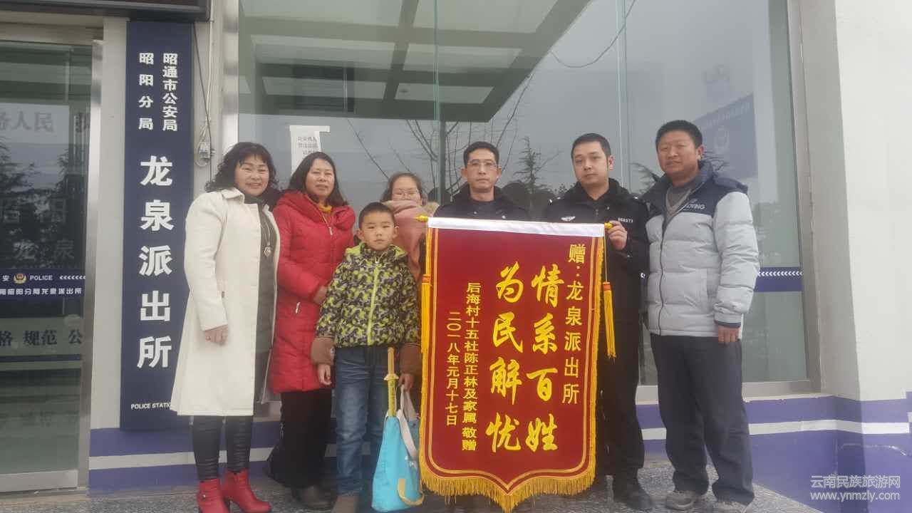 2018年1月18日下午,陳正某老人的家人興高采烈地來到昭通市公安局昭陽分局龍泉派出所,激動(dòng)地把一面寫有“情系百姓 為民解憂”的錦旗送到了民警手中,感謝民警在寒夜中把走失的陳正某老人送回家。