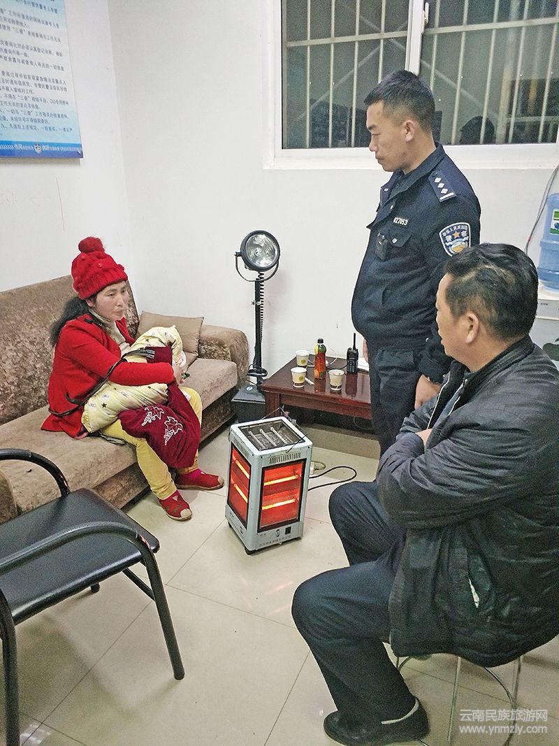 事發(fā)當(dāng)時(shí)已凌晨時(shí)分,寒風(fēng)呼嘯。在曲靖市公安局開發(fā)區(qū)分局西城派出所的值班室外,一位母親在一直徘徊著,懷里的嬰兒凍得不停啼哭。在民警幾次招呼后,母親才抱著孩子走進(jìn)值班室。民警給母親倒了一杯開水,讓其烤著火,嬰兒才安靜下來。