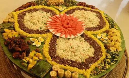 五色花米飯是布依人及壯族人的特產(chǎn),不但色彩鮮艷,而且味道悠遠(yuǎn)。色彩一般有紅、紫、黑、白、黃幾種,叫"五色花米飯"。