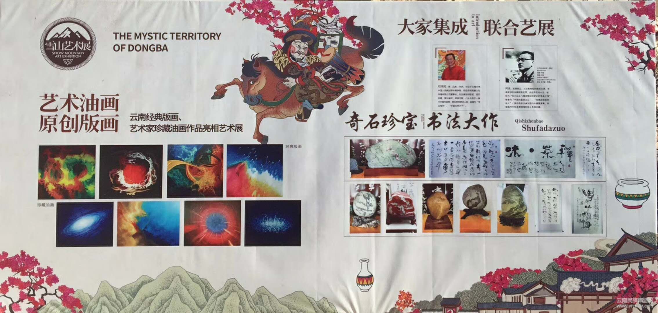 正月初三至初七,東巴秘境繼于中國非遺(書畫、賞石)文化藝術(shù)珍品館,中國非遺·云南木刻版畫藏品展館舉行首屆“雪山藝術(shù)展”后特邀中國書畫界、賞石界傳奇式人物,“書壇怪杰"、"中國石界才子”、國家專家人才庫入選人。