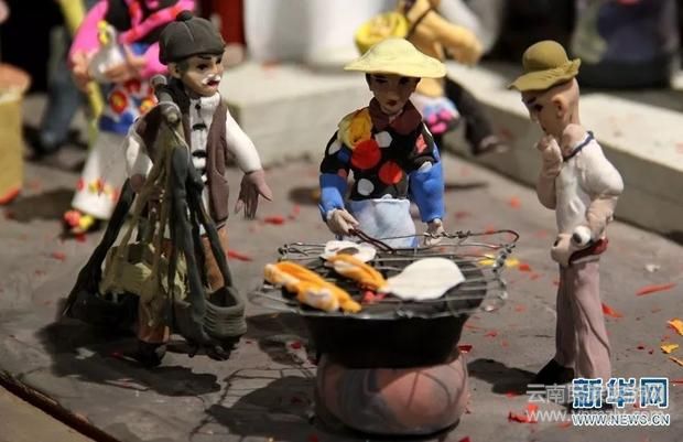 春節(jié)期間,大型面塑作品《我們的節(jié)日》在昆明市博物館展出,長(zhǎng)達(dá)18米的展臺(tái)上,1000余個(gè)栩栩如生的面塑人偶形態(tài)各異,生動(dòng)演繹了火把節(jié)、潑水節(jié)等民族節(jié)慶活動(dòng)。此外,上梁、迎親等傳統(tǒng)習(xí)俗,以及跳蚌殼舞、劃旱船、騎毛驢等民俗表演,也被面塑藝術(shù)家們巧妙地融入到作品之中,吸引了眾多市民及游客前來(lái)觀看。