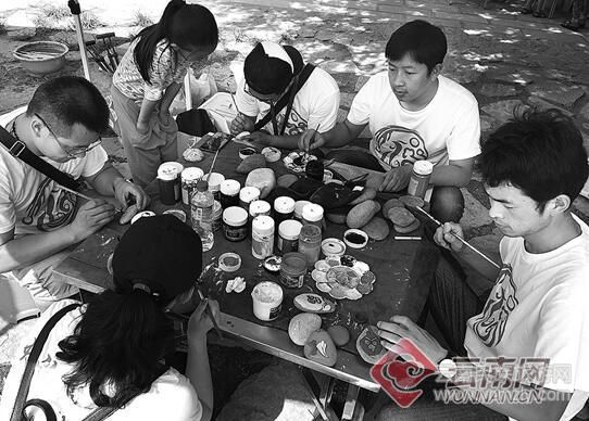 包春雷當(dāng)時(shí)就告訴孩子們,不要被眼前的世界限制了想象力,石頭也會(huì)開花。當(dāng)時(shí)有學(xué)生不解:“石頭上怎么開花?”這個(gè)疑問,包春雷并沒有現(xiàn)場(chǎng)解答。鄉(xiāng)間綠野,他帶著孩子們傾聽小溪的流水聲,買來顏料和畫筆,撿石頭、洗石頭,在這些石頭上作畫。所有的創(chuàng)意,取之自然,用之自然。