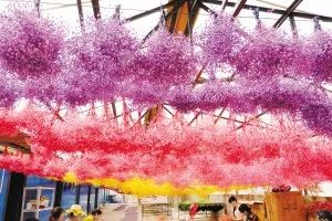 除了看“百草”,游人還可參觀保真花生產(chǎn)線,看一朵玫瑰是怎么置入植物延壽保鮮液,從而擁有3年的漫長“花期”。