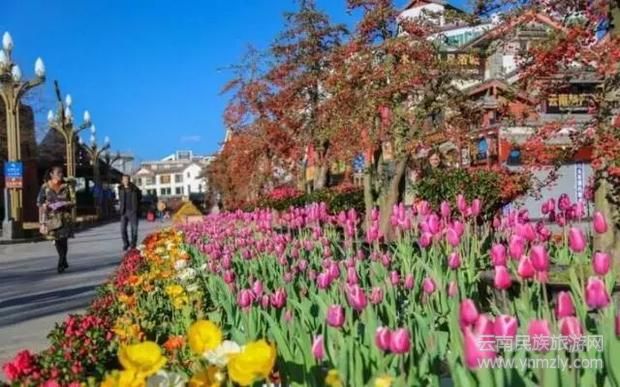 洋水仙、郁金香、雛菊、瓜葉菊、比利時杜鵑、貼梗海棠、火棘等這些屬于春天的寵兒,讓這座古老的城生機勃勃。為此,今年春節(jié)期間,世界文化遺產(chǎn)麗江古城特意組織了新春花展,來迎接四海賓朋。