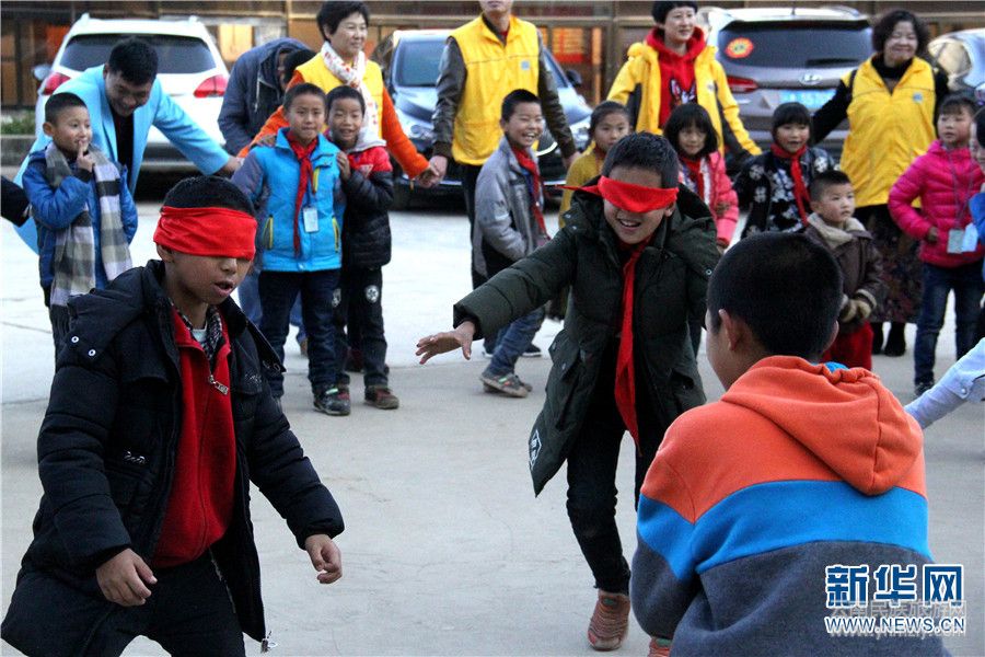 學(xué)生們和愛心人士一起做游戲。新華網(wǎng) 念新洪 攝