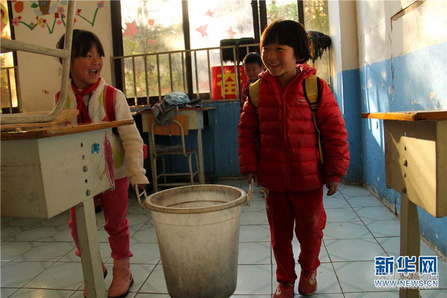 互幫互助,打掃完衛(wèi)生一起回家。新華網(wǎng) 念新洪 攝