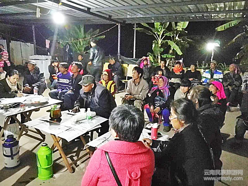 深冬的佤山,一輪皎潔的明月懸掛天空,明亮的太陽(yáng)能燈依次排列,沿著平坦的水泥路蜿蜒前行,燈的盡頭依稀呈現(xiàn)出一個(gè)錯(cuò)落有序、干凈整潔、燈火通明的拉祜寨子,這就是班母村十四組。雖然夜晚的寒氣漸升,然寨子里卻一片喧嚷很是熱鬧。寨子里男女老少和村里的黨員們以及縣農(nóng)科局、縣農(nóng)行等單位幫扶人早早就聚集在副組長(zhǎng)扎莫家的院子里,有的三三兩兩的討論著,有的圍坐一起不停地交代著、商量著,有的站在燈光下聚精會(huì)神地看著手中的材料,有的若有所思地拿著筆在本子上記著,大家臉上泛著興奮的神情,充滿(mǎn)了期待......