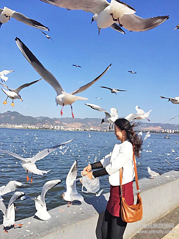 也許,海鷗和人類一樣,要的是和平環(huán)境,要的是生態(tài)文明。而自1985年海鷗重返昆明時,除“海鷗老人”省吃儉用地率先喂養(yǎng)海鷗外,眾多市民也紛紛效仿,各自買些食物來喂養(yǎng)這些“天外來客”,繼而還有了專門生產(chǎn)和銷售“鷗糧”的單位和個人,于是,海鷗年復一年,逐年増多,并成為昆明的一大景觀。