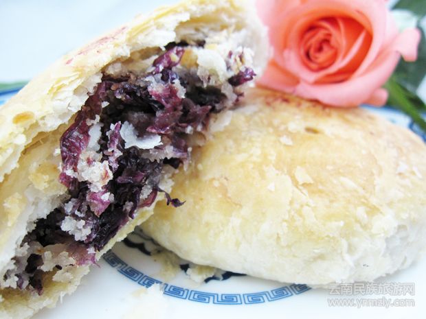 鮮花餅是一款以云南特有的食用玫瑰花入料的酥餅,是以“花味、云南味”為特色的云南經(jīng)典點(diǎn)心代表。鮮花餅在云南當(dāng)?shù)睾姹浩放拼蠖季袖N售,其中以嘉華餅屋最富盛名。每年4月,等待鮮花餅的上市早已成為當(dāng)?shù)厝嗣竦墓餐诖?,排著長(zhǎng)隊(duì)等待購(gòu)買新鮮上市的鮮花餅早已成為司空見(jiàn)慣的景象。