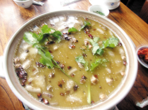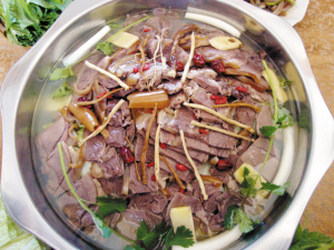 頂級推薦菜品:羊肉湯鍋。選自彝家人山上放羊的黑山羊,羊肉色澤黃亮,皮脆肉嫩,麻辣鮮香,湯汁乳白,軟爛醇香,半湯半菜,豐富多樣,佐以鹽水椒,別具風味。俗話說,“冬吃羊肉賽人參,春夏秋食亦強身。”據(jù)《本草綱目》載,羊肉“暖中補虛,補中益氣,開胃健力,益腎氣”,是助元陽、補精血、益勞損之佳品。