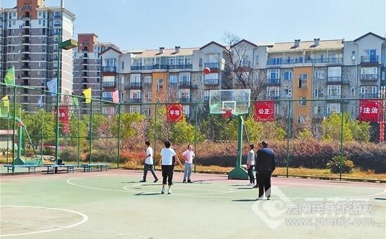 午后,天藍(lán)氣清,官渡區(qū)矣六街道漁村社區(qū)的群眾文化娛樂廣場上,嬉戲的孩子、健身的老人、打球的青年、聊天的婦女,其樂融融。