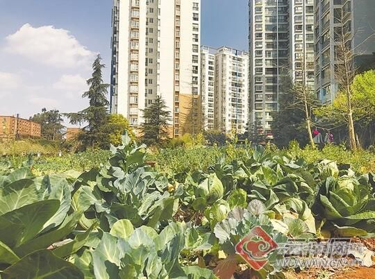 白菜、蠶豆、豌豆尖、茴香、萵筍、蓮花白……春天剛到,各式各樣的蔬菜綠意盎然,本該出現(xiàn)在田間地頭的一番景象卻出現(xiàn)在了昆明東驤神駿小區(qū)的公共用地里。