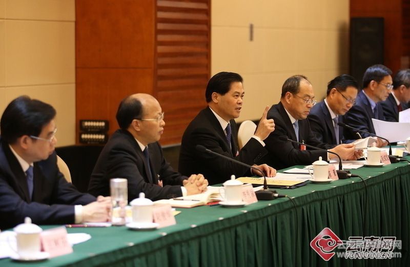 代表團(tuán)團(tuán)長(zhǎng)陳豪,副團(tuán)長(zhǎng)阮成發(fā)、和段琪參加審議;副團(tuán)長(zhǎng)李秀領(lǐng)主持。