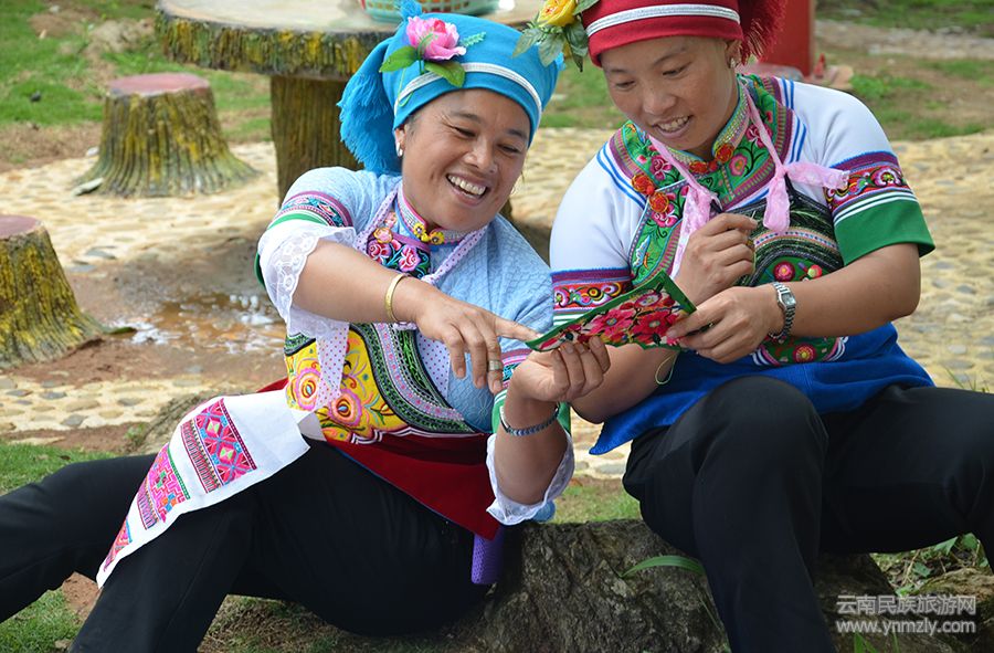 少數(shù)民族婦女共同探討刺繡技藝