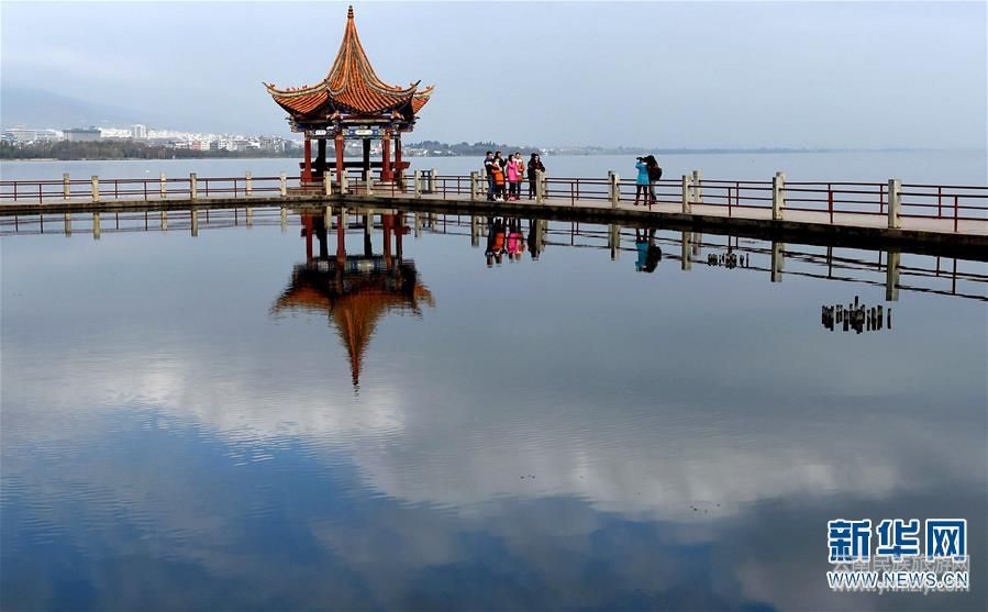 游人在云南大理洱海邊游覽。 新華社記者藺以光 攝
