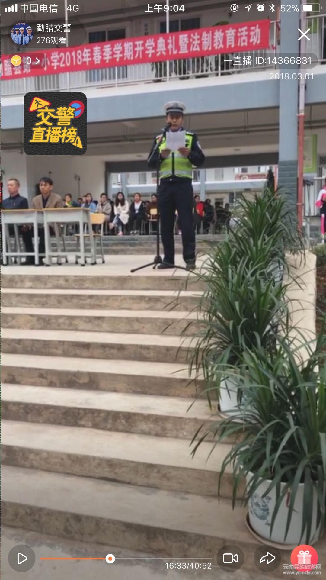 為做好開學(xué)期間廣大學(xué)生的交通安全教育工作,進(jìn)一步增強(qiáng)師生的交通安全意識(shí)和自我防護(hù)意識(shí),全力預(yù)防涉及學(xué)生的道路交通事故發(fā)生。3月1日,勐臘縣公安局交警大隊(duì)深入勐臘縣一小開展交通安全宣傳“大直播”活動(dòng),通過“一直播”官方直播平臺(tái),對全校師生開學(xué)第一堂交通安全知識(shí)課進(jìn)行同步直播。