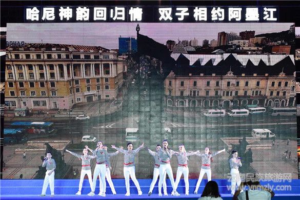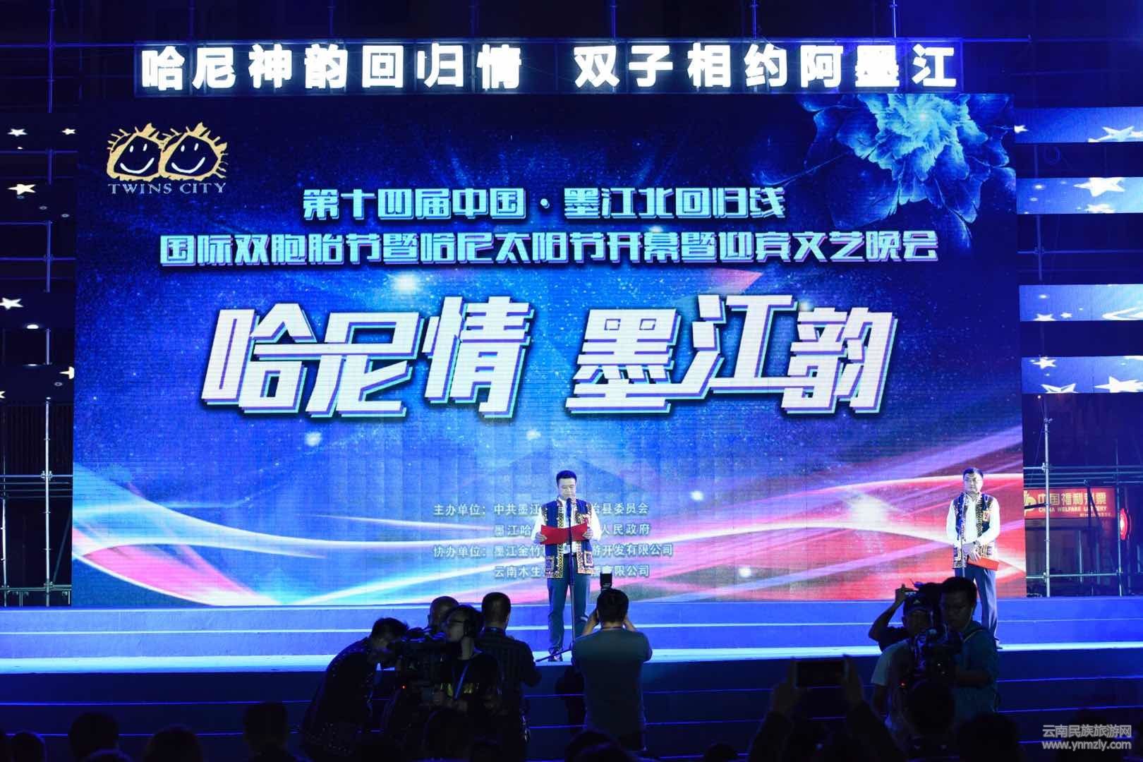 當(dāng)晚,在鳳凰一號(hào)廣場(chǎng),以群舞《歡聚墨江》拉開(kāi)了“哈尼情,墨江韻”第十四屆中國(guó)·墨江北回歸線國(guó)際雙胞胎節(jié)暨哈尼太陽(yáng)節(jié)開(kāi)幕暨迎賓文藝晚會(huì)的序幕。接著,歌曲《哈尼的家鄉(xiāng)在哪里》、俄羅斯雙胞歌舞表演《海參崴》等節(jié)目表演將活動(dòng)拉向高潮。同一時(shí)間在活動(dòng)的另地太陽(yáng)廣場(chǎng)也隨之架起篝火,現(xiàn)場(chǎng)觀眾激情涌動(dòng),紛紛加入篝火狂歡隊(duì)伍,近千人整齊有序地手牽著手,圍著篝火,大聲的唱,盡情的跳,整個(gè)篝火晚會(huì)持續(xù)了3個(gè)小時(shí),現(xiàn)場(chǎng)歡聲笑語(yǔ)一片,激情四溢的眾人狂歡匯成了歡樂(lè)的海洋。