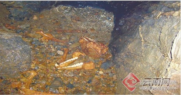 2005年,中美聯(lián)合科考隊在騰沖江東山小水井落水洞進行詳細勘察,獲得了一批動物化石,其中就包括大熊貓的部分骨架化石。研究后發(fā)現(xiàn),這批動物化石屬于16個種的動物遺存,大多數(shù)為現(xiàn)生種,少數(shù)為地區(qū)性絕滅種,如大熊貓、雙角犀、亞洲象,時代初步判斷為全新世早、中期。其中,有大熊貓完整的頭骨、下頜骨和部分頭后骨骼,形態(tài)和尺寸與現(xiàn)生大熊貓基本接近。