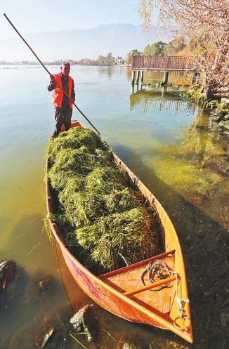 “老人家累不累?”“再累也要及時清理這些水草,耽擱不起啊。”為防止水草腐爛污染水質,這項由村民承擔多年的清污作業(yè)從未間斷過。對于在洱海邊土生土長的嚴大爹來說,從小喝洱海水、吃洱海魚,就是他對洱海最美好的記憶,盡力保護好洱海就是要把這份美麗的鄉(xiāng)愁傳下去,用他的話說,“沒有了良好的生態(tài),哪里還記得住鄉(xiāng)愁。”